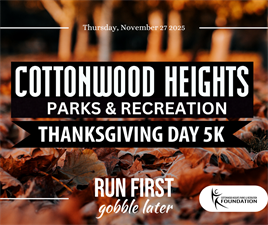 Start your Thanksgiving morning with one of Utah’s favorite traditions, the Cottonwood Heights Thanksgiving Day 5K. This event sells out every year and is proud to be Utah’s longest “running” Thanksgiving Day race.